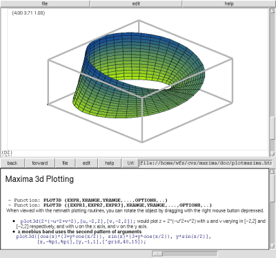 Update: So, inzwischen hab ich das Ganze mal ausprobiert. Wer nicht die uralt Binaries (zumindest unter Linux, die Windows Version ist ganz aktuell) benutzen will, muss hier selbst kompilieren, was sich aber nicht ganz einfach gestaltet. Kleiner Tip: Nicht die GCL und XGraph Versionen von der Maxima Seite nutzen, die sind uralt und können mit Linux nicht um...